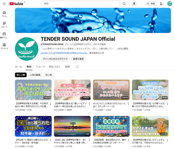 癒しのYouTubeチャンネル「TENDER SOUND JAPAN」は、